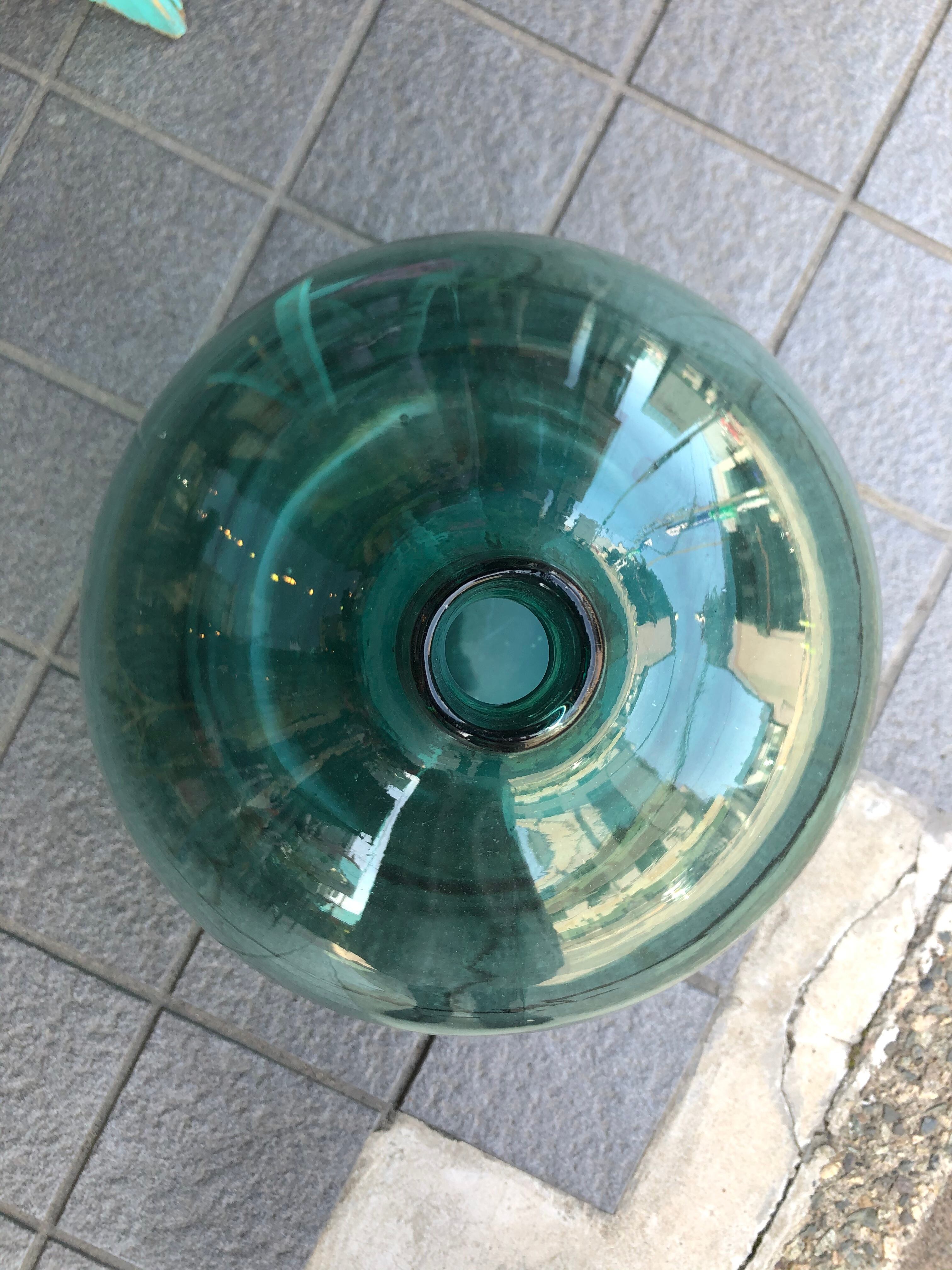 遠い海から運ばれてきた…そんな想像を掻き立てるソーダガラスのような雰囲気の美しい青ガラスの壺です。