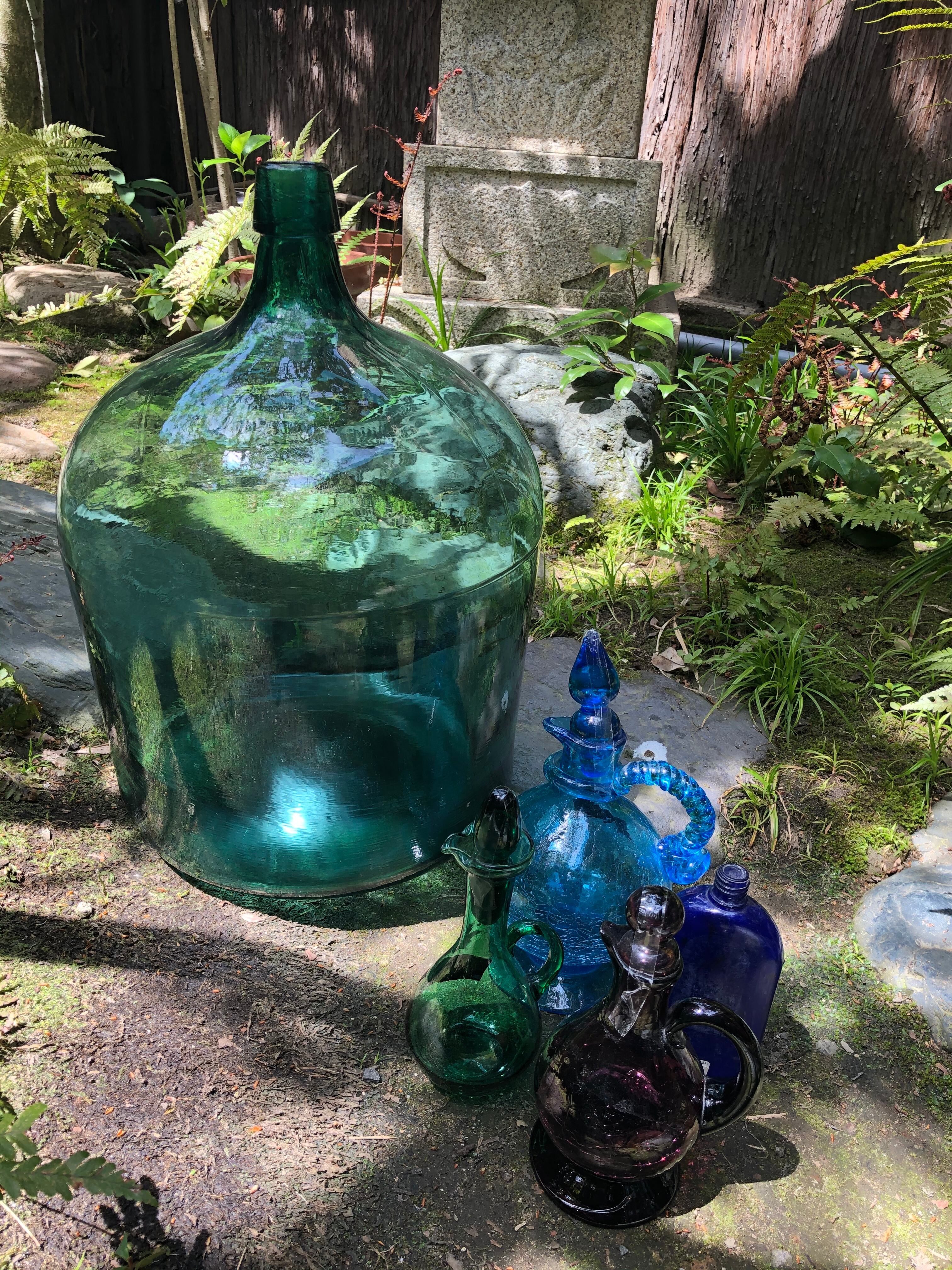 ガラス瓶を集めたデコレーションでお玄関からお客様をお出迎え、も素敵ですね。