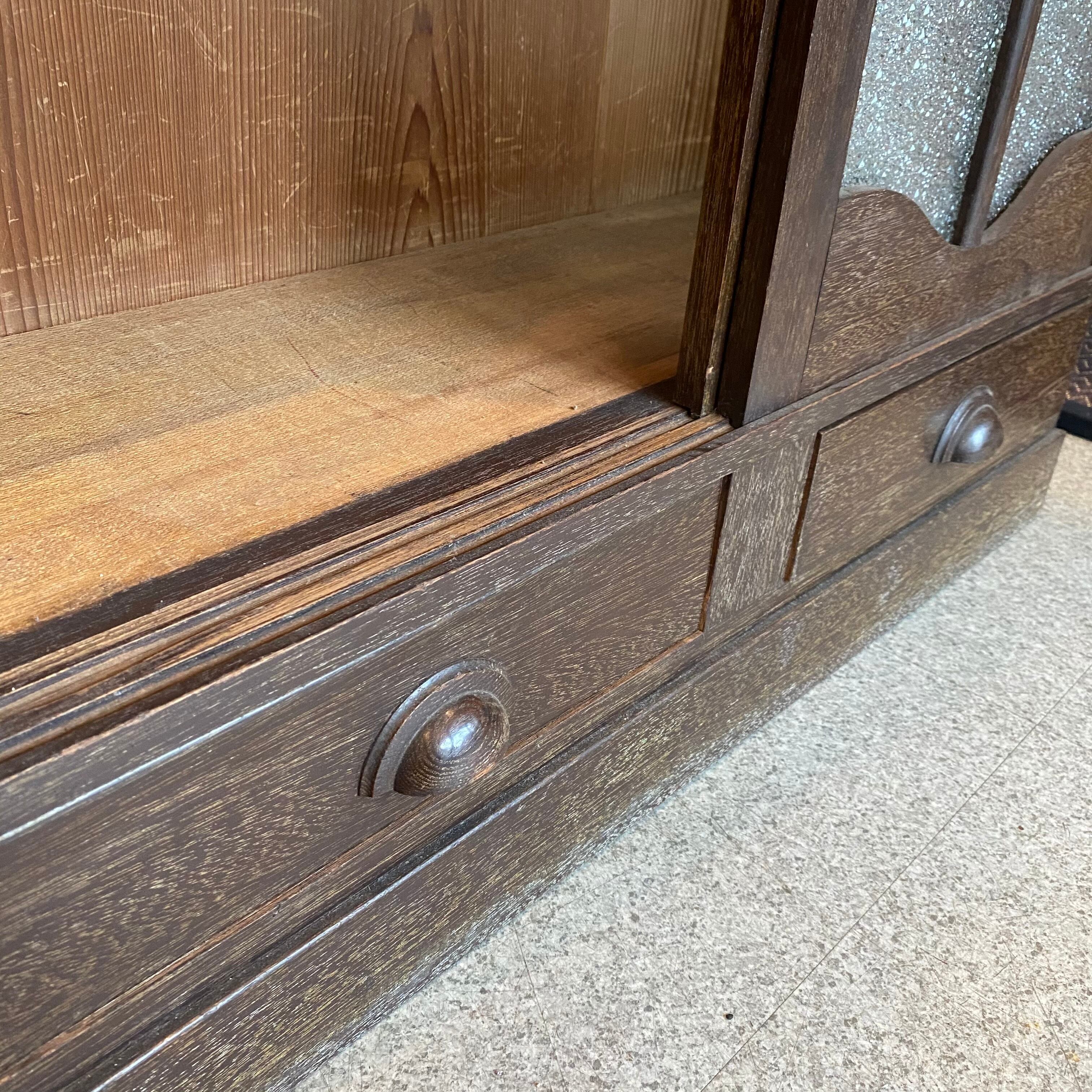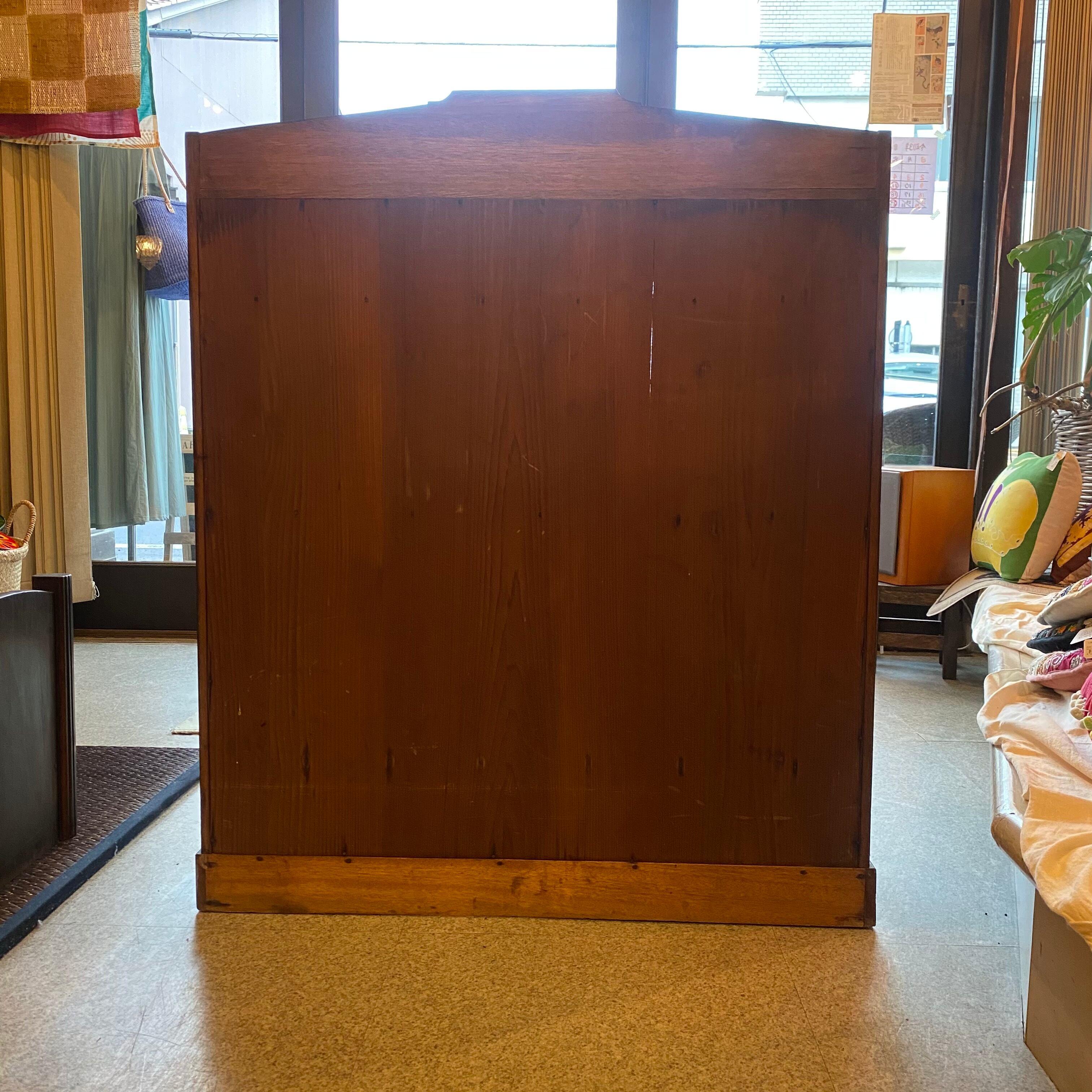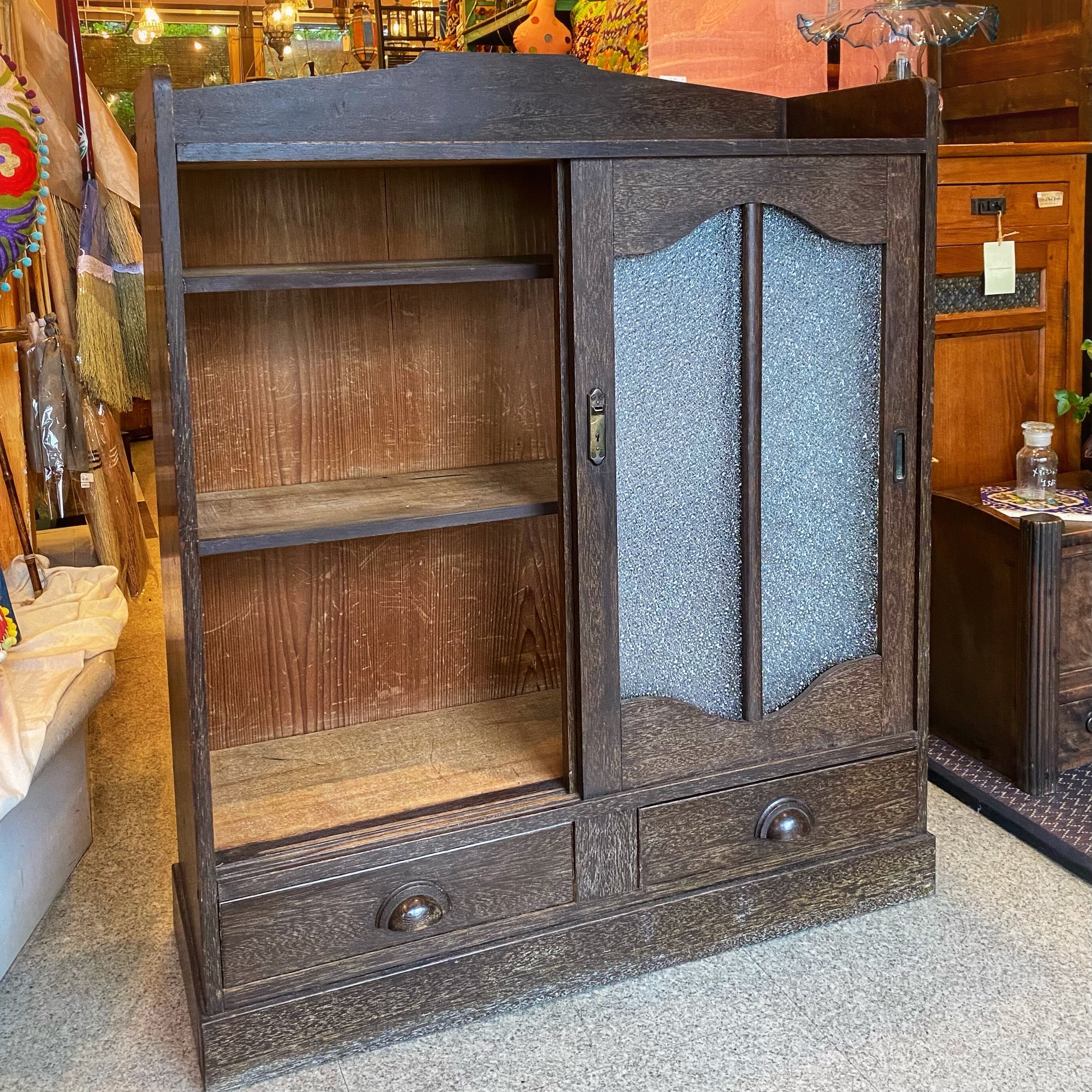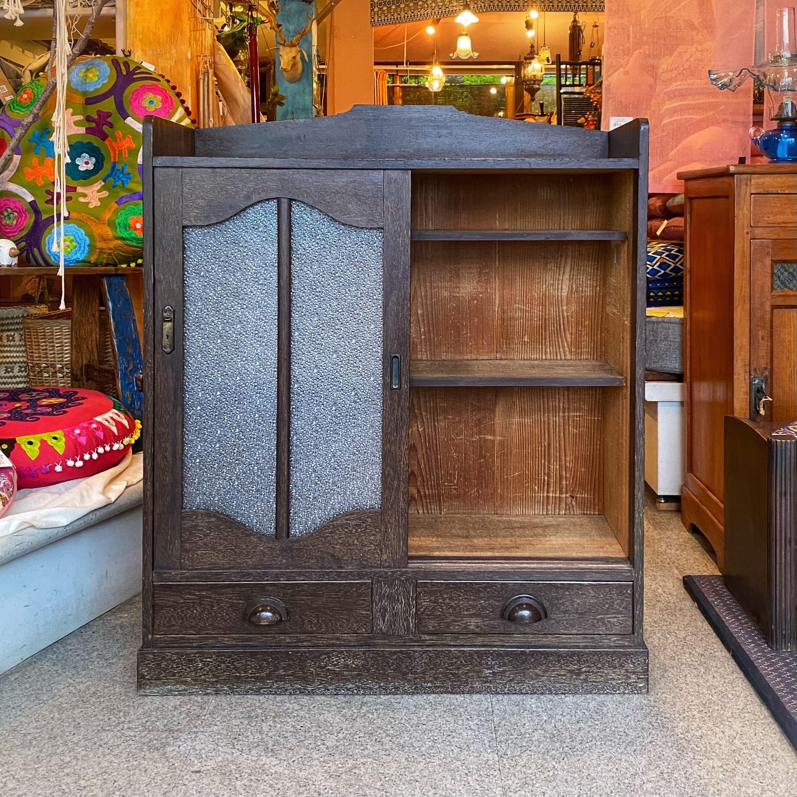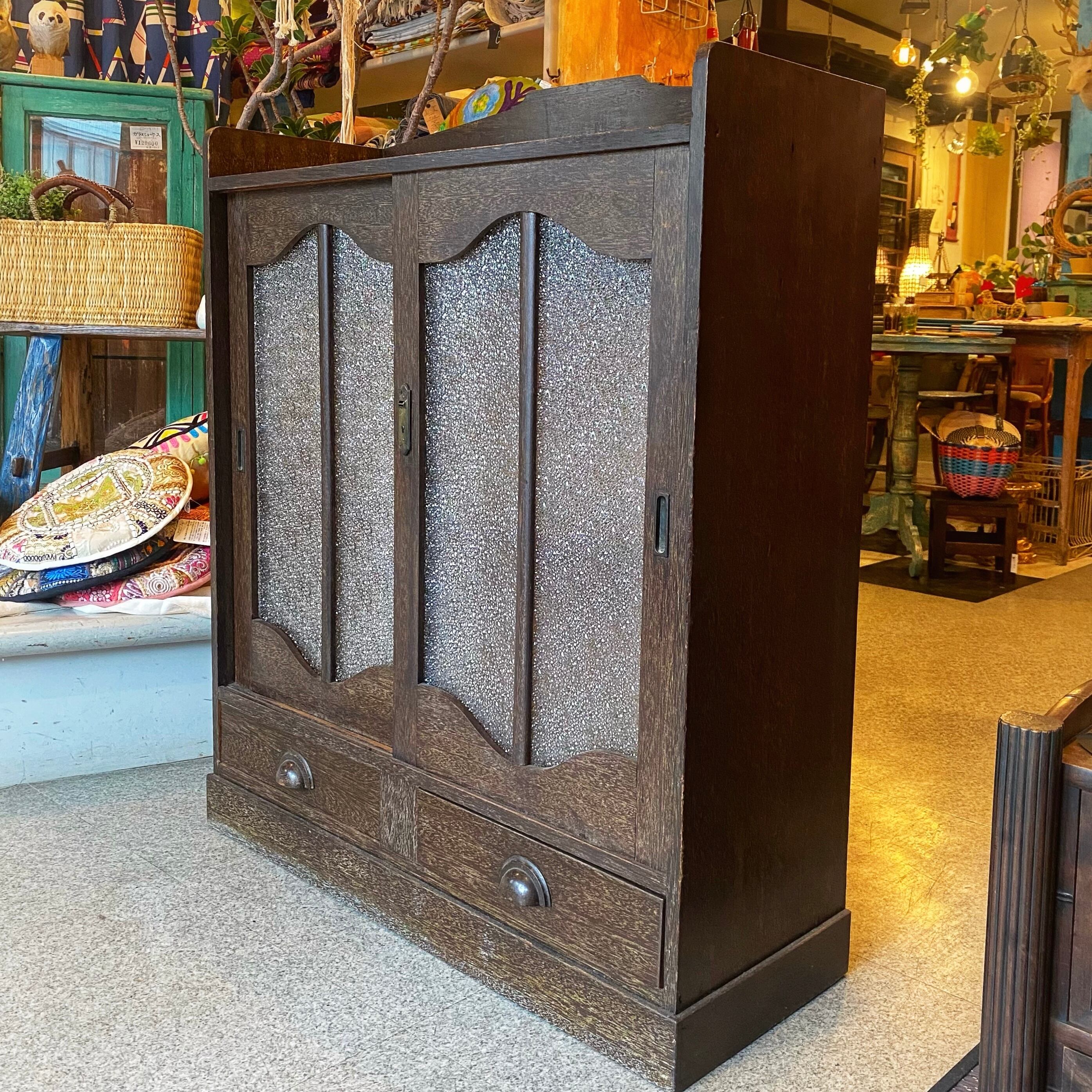 ギザギザガラスの引き戸と、引き出し2箇所あり、しっかり収納ができます。