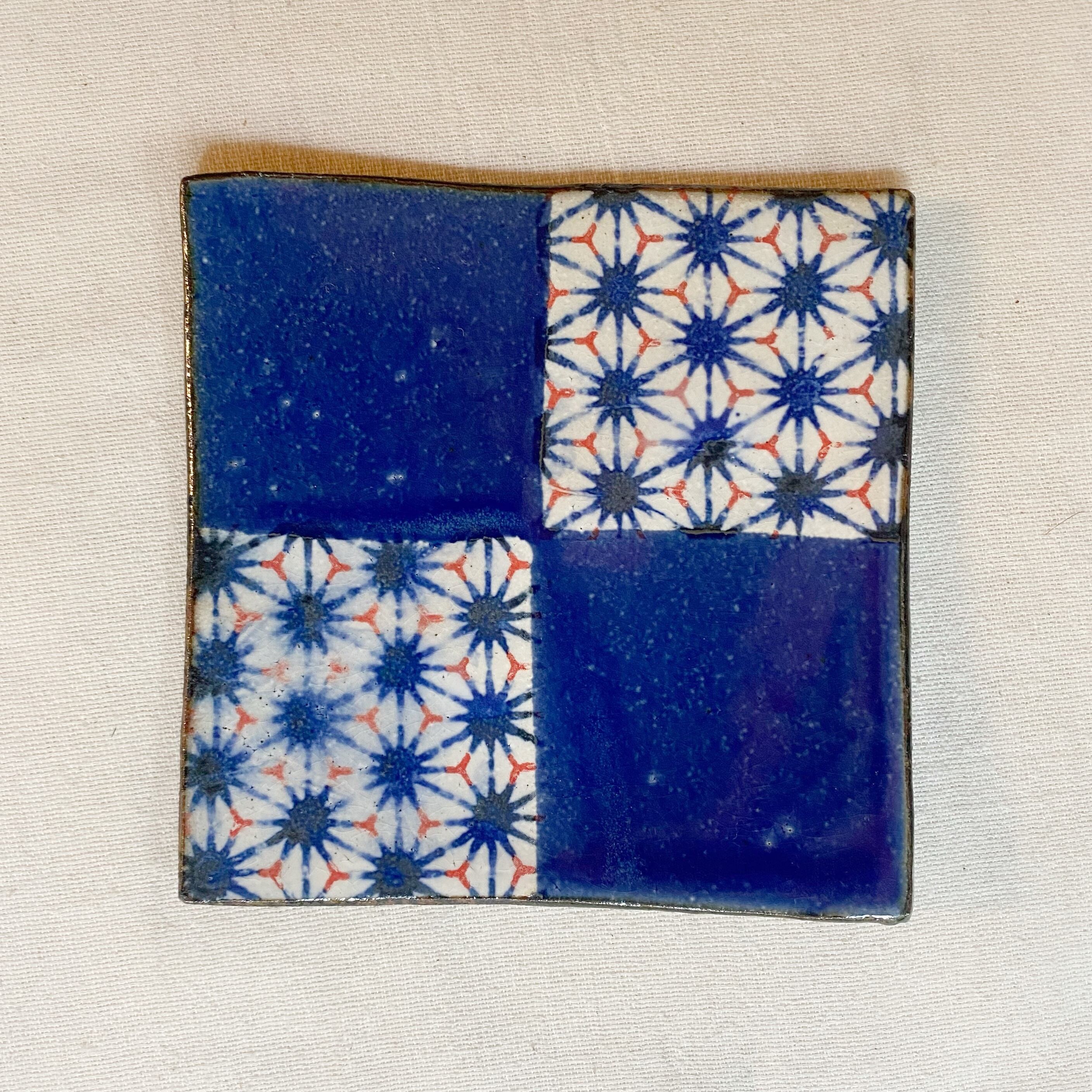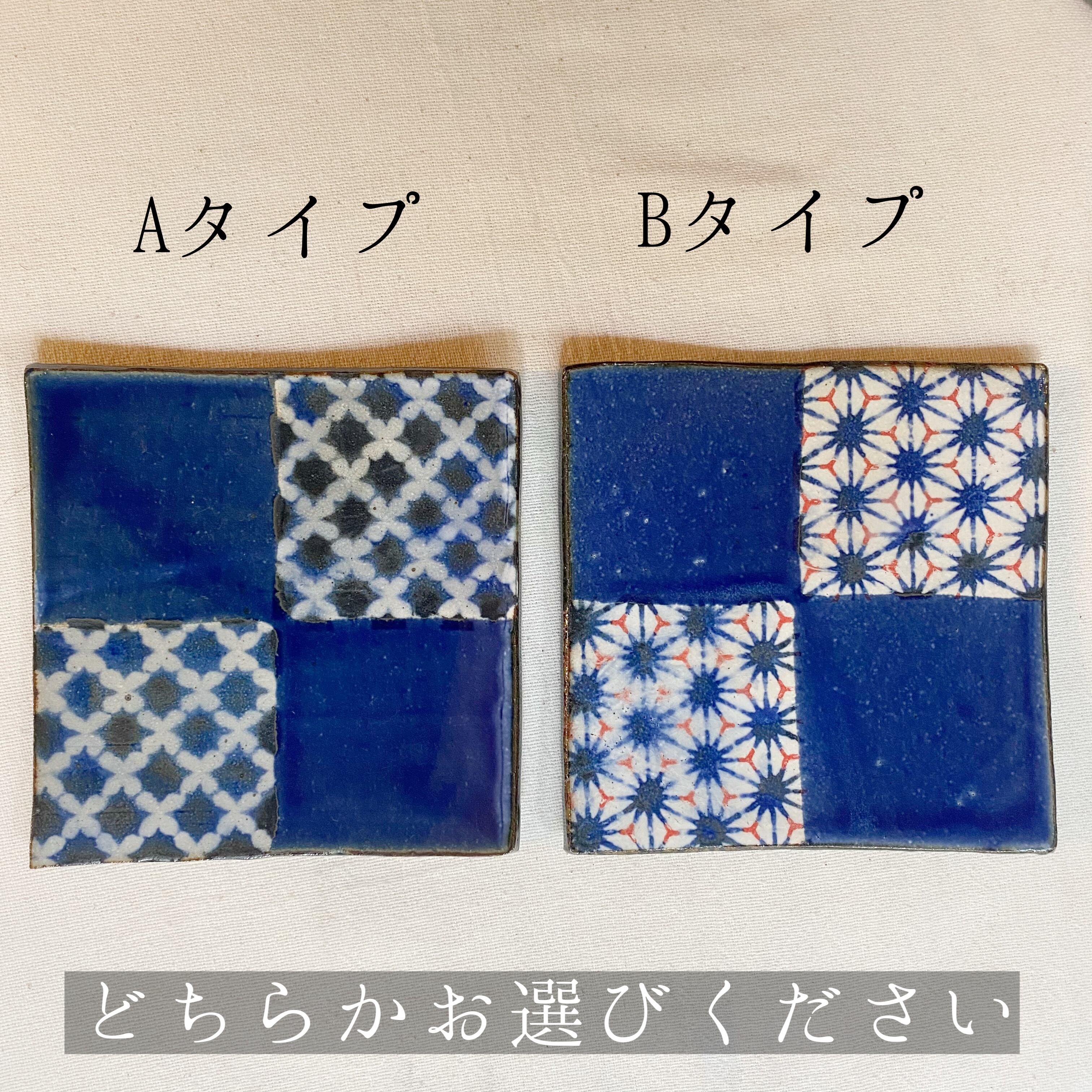 藍染め 瀬戸焼 四角取り皿